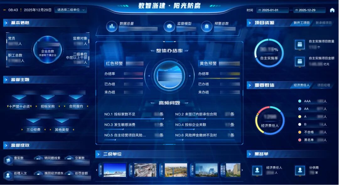 下一步,集团将继续深入推进“阳光防腐”大数据监督平台建设,不断迭代升级预警模型,推动关键行权事项线上化、数字化,实现操作留痕、过程可溯、阳光透明。从严从实核查处置预警信息,进一步严明纪律规矩和制度刚性。坚持主体责任与监督责任贯通,推动事前、事中、事后的监管监督紧密衔接、形成合力。更好地利用大数据信息化赋能正风反腐,为我省推进建筑行业治理改革、净化行业生态提供“浙建方案”。